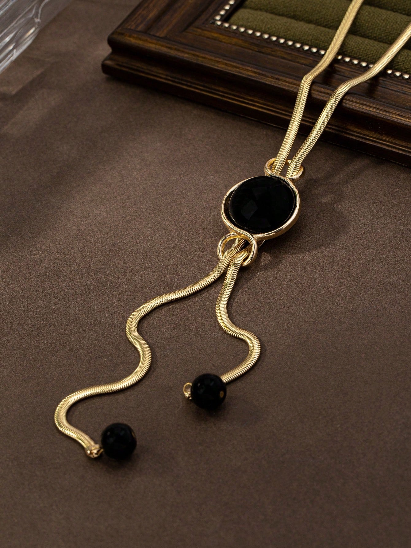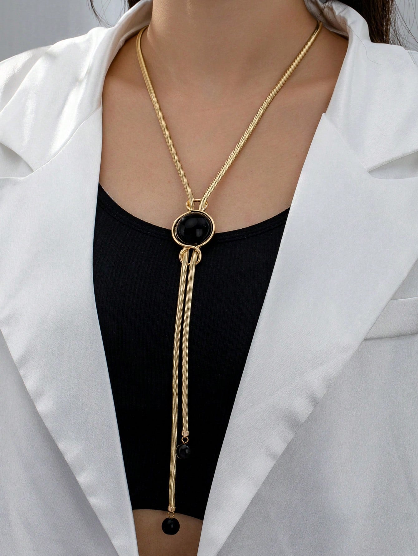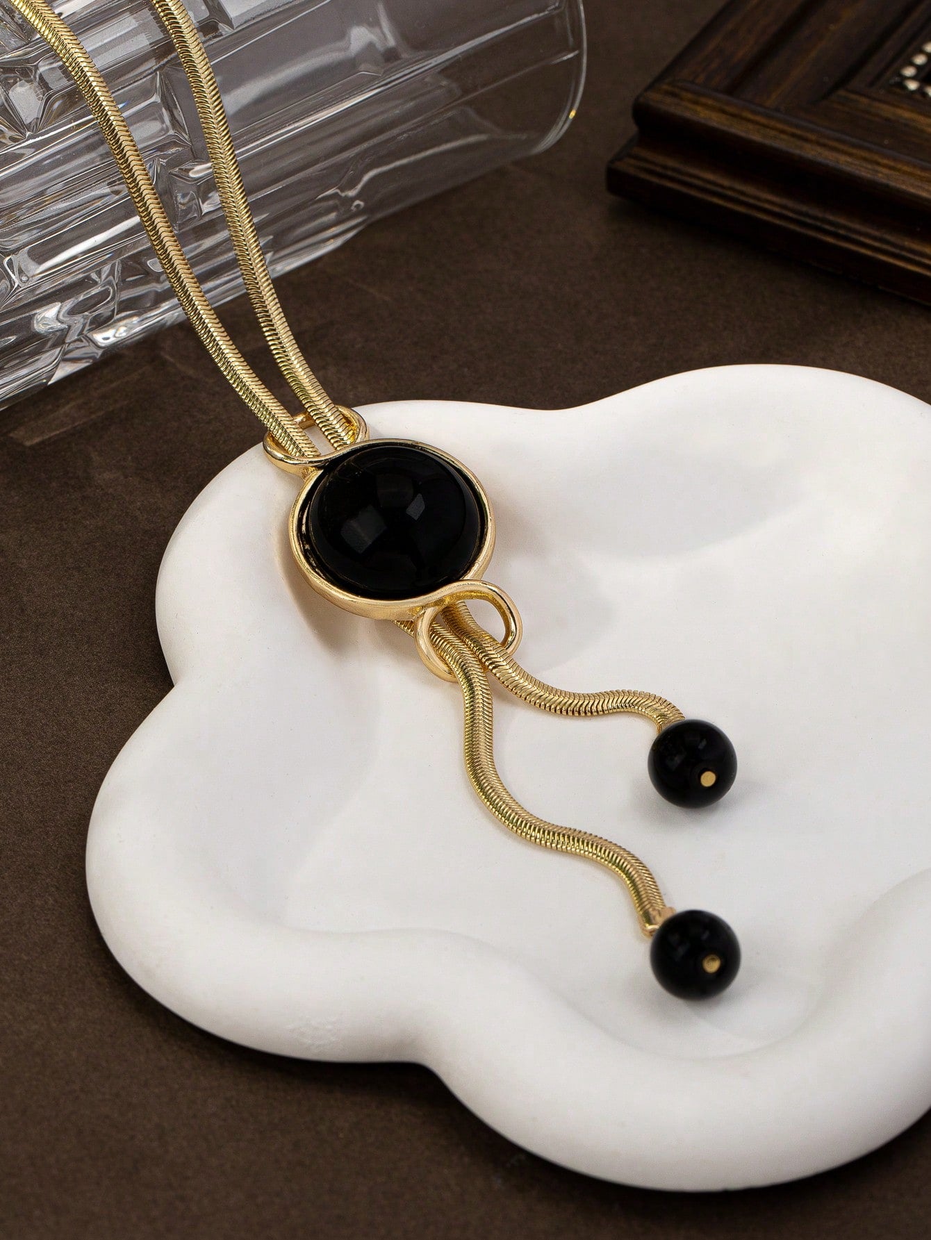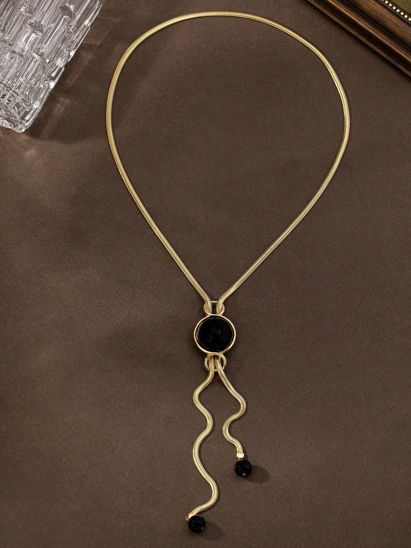 1pc Elegant Luxury Glass Pendant Necklace - Black